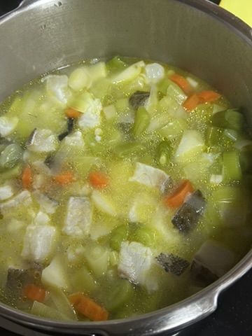 Porrusalda con bacalao