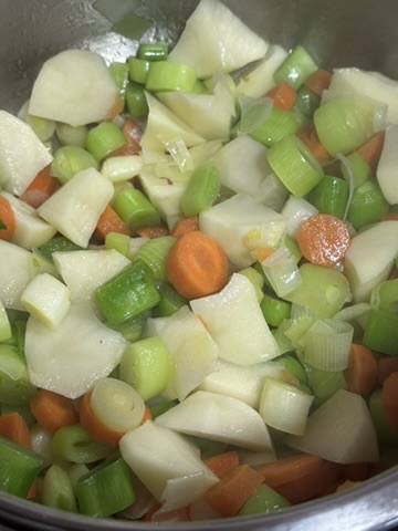 La porrusalda tradicional no se le añade el bacalao, pero se trabaja igual, eso sí sin añadir el bacalao y así tendremos una porrusalda clásica.